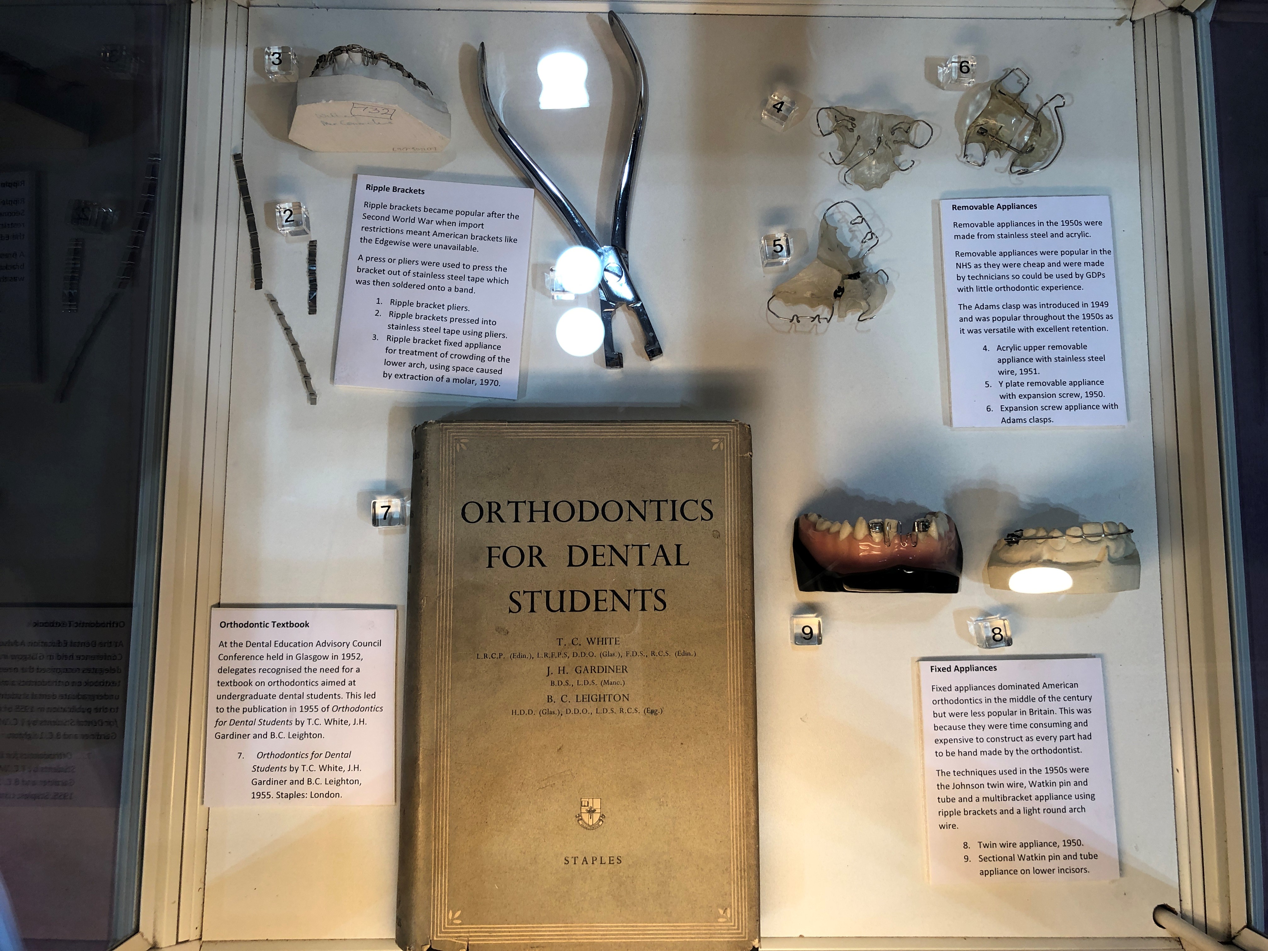 Orthodontics in the 1950s was quite different to current day treatment. Fixed appliances were fixed with stainless steel bands around each tooth and due to import restrictions after the Second World War, nearly all the components of an appliance had to be made by hand. As it could take three or four hours to fit a fixed appliance, most treatment was carried out with removable appliances by dentists with little orthodontic training. Visitors to the Museum’s stand at this year’s BOC had the chance to see some of these early appliances and have a go at making a ripple bracket using a ripple bracket press and stainless steel tape. The stand also included an interactive digital display of a series of oral history interviews carried out with orthodontic consultants to mark 70 years since the first orthodontic consultant, John Hooper, was appointed in 1950.